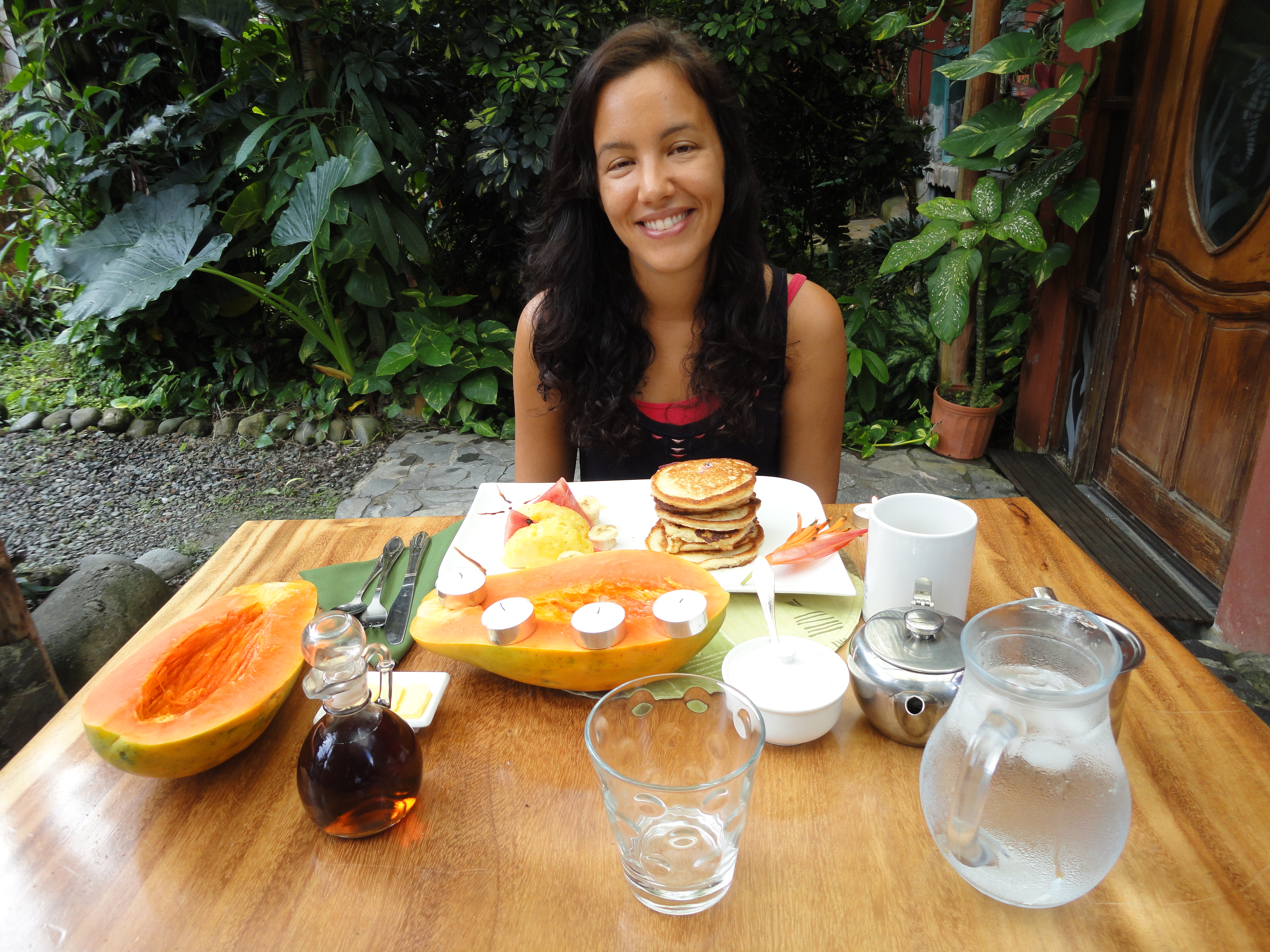 Nach einer herrlichen Nacht in unserem riesigen Himmelbett, wurde ich am Morgen von Christian mit einem tropischen Frühstück mit Kokosnuss-Pancakes, frischen Früchten und Kaffee auf unserer Terrasse überrascht.