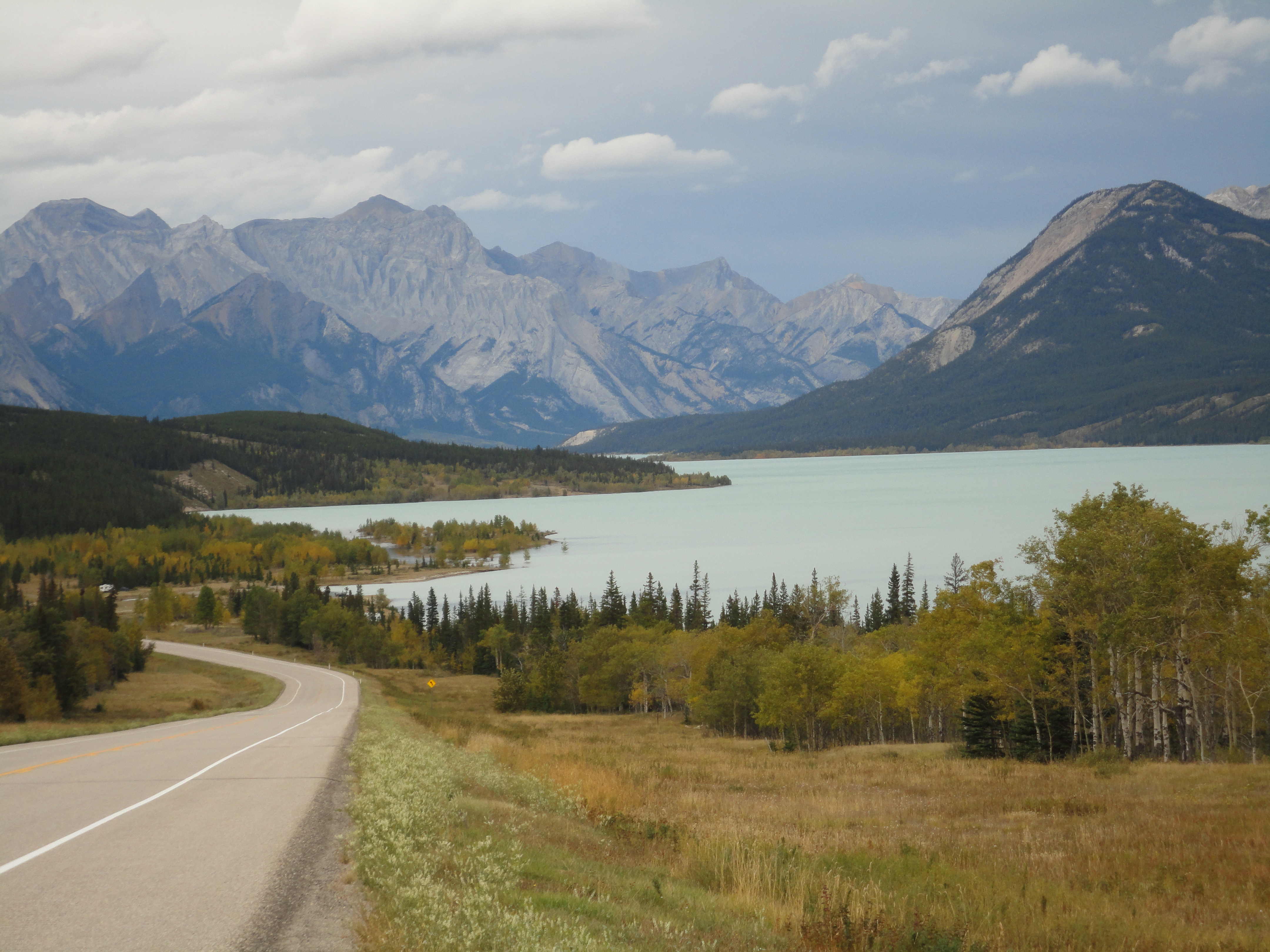 Abschied von den Rockies. Vom Icefields Parkway zweigen wir am Saskatchewan Crossing ab und fahren entlang des Flusses Richtung Calgary. Die Berge werden schon bald von Hügeln abgelöst, welche nun das Landschaftsbild prägen.