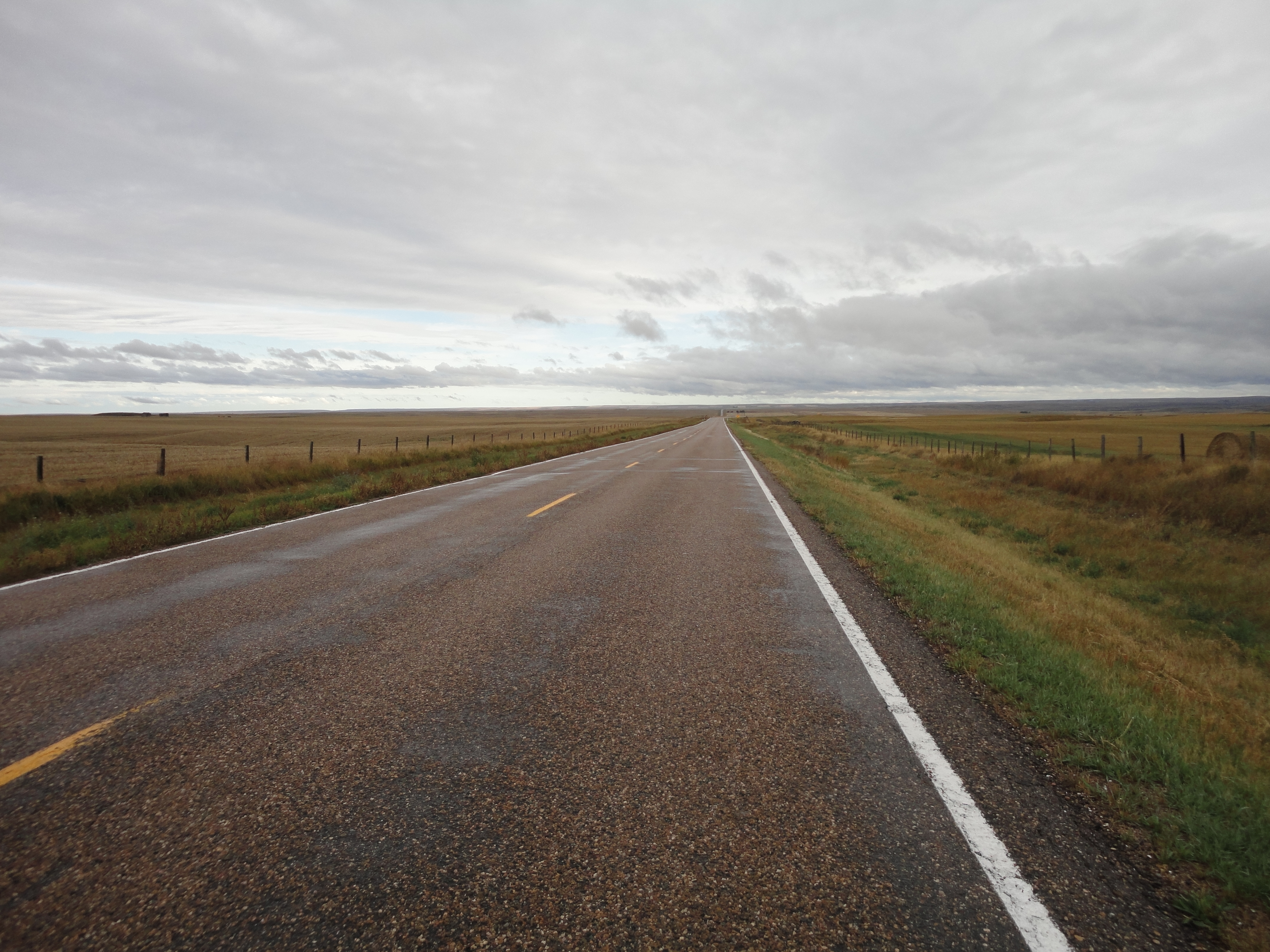 Nachdem wir Calgary verlassen haben, wird die Landschaft immer flacher. Wiesen und Getreidefelder erstrecken sich bis zum Horizont.