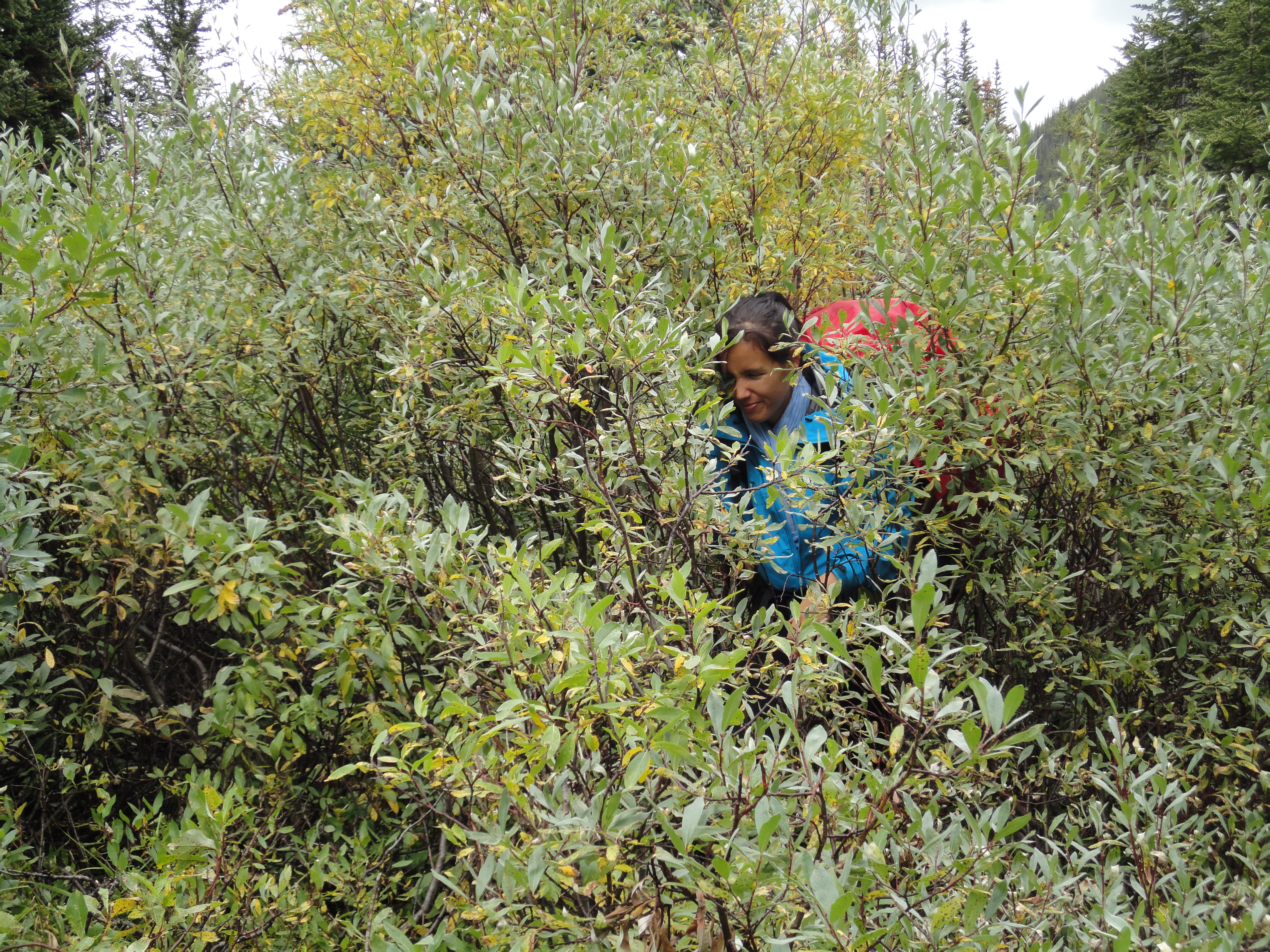 Und da man lieber nicht einem Grizzly Baeren auf die Tazen treten will, muss man sich immer laut unterhalten, oder Christian singt Schullieder aus voller Kehle. Das kann manchmal auch zu lustigen Situationen fuehren, zum Beispiel wenn einem hinter der naechsten Kurve nicht ein Baer sonder ein anderer Trekker begegnet.