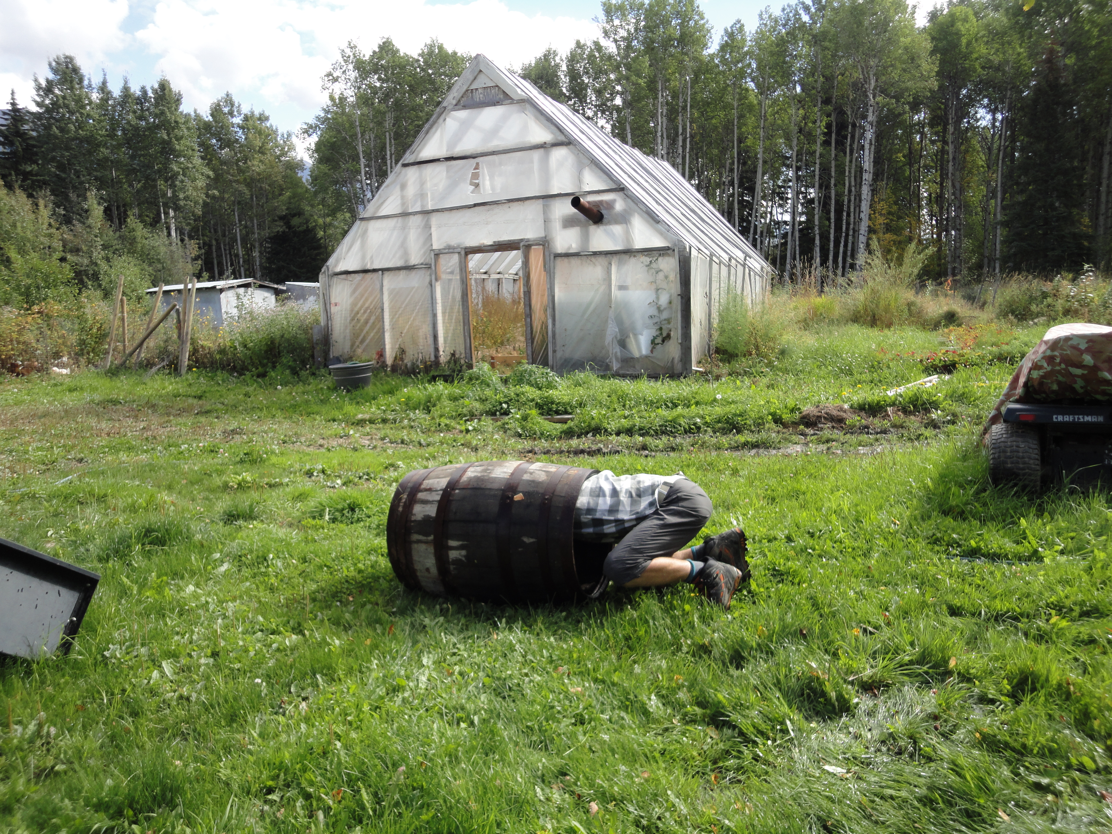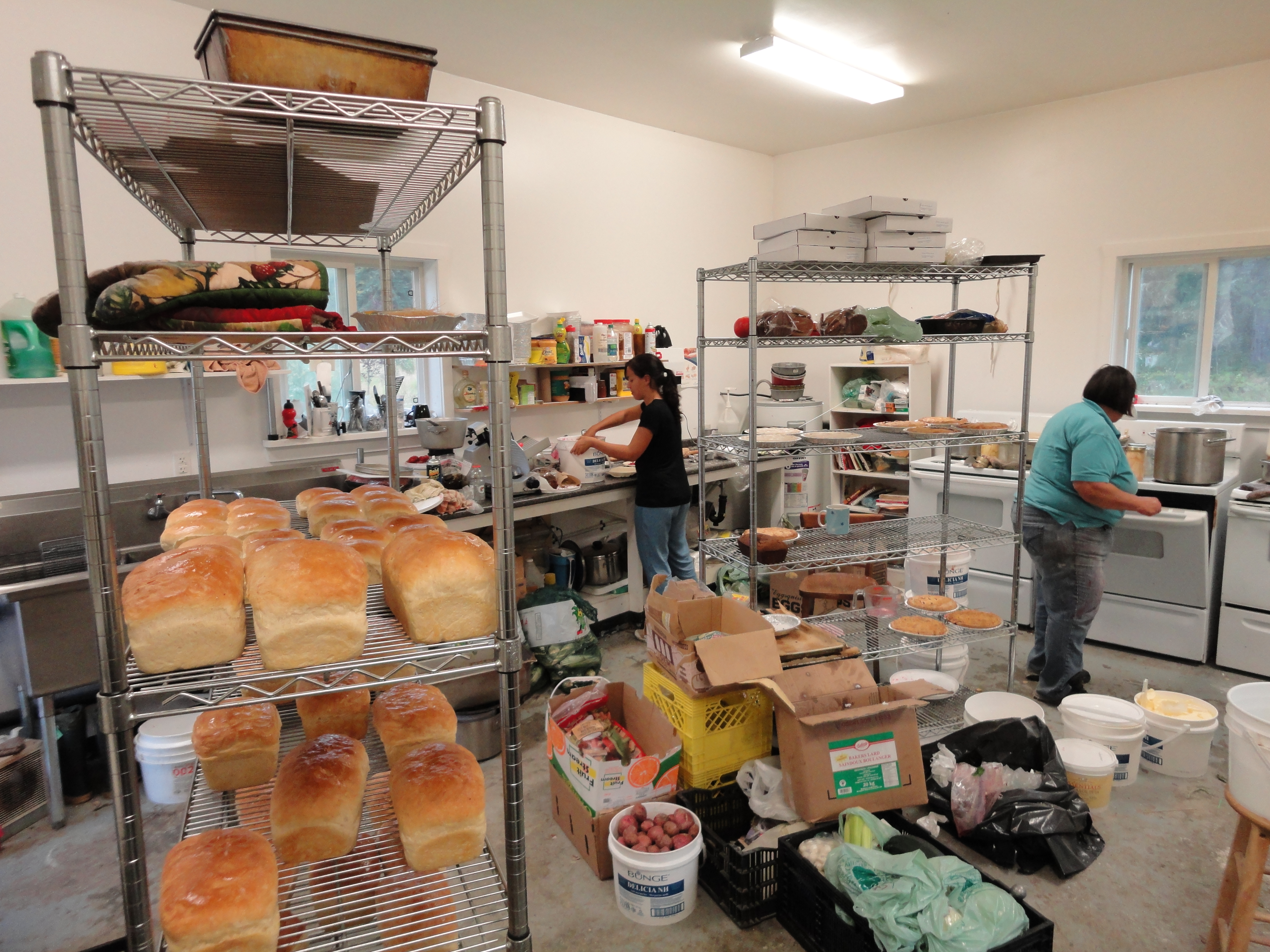 Nein nein, Christian bereitet hier nur das Fass fuers Sauerkraut vor. Zu essen hatten wir immer reichlich! Gemuese von der Farm, viiiiiiel Fleisch und noch viel mehr Suesses. Gemaess den Besitzern konnten wir Gemuese, Fruechte von der Farm und alles aus der Baeckerei essen. Insbesondere Karin waehnte sich im Paradies und genoss Fruchtkuchen zum Zmorga, Zimtschnecken zum Zmittag, Cookies zum Zvieri…. Da Nelson ein super Koch ist, gab es selbstverstaendlich immer noch ein gekochtes Znacht. Immer sehr gut, meistens jedoch nicht gerade sehr gesund – typisch kanadisch halt.