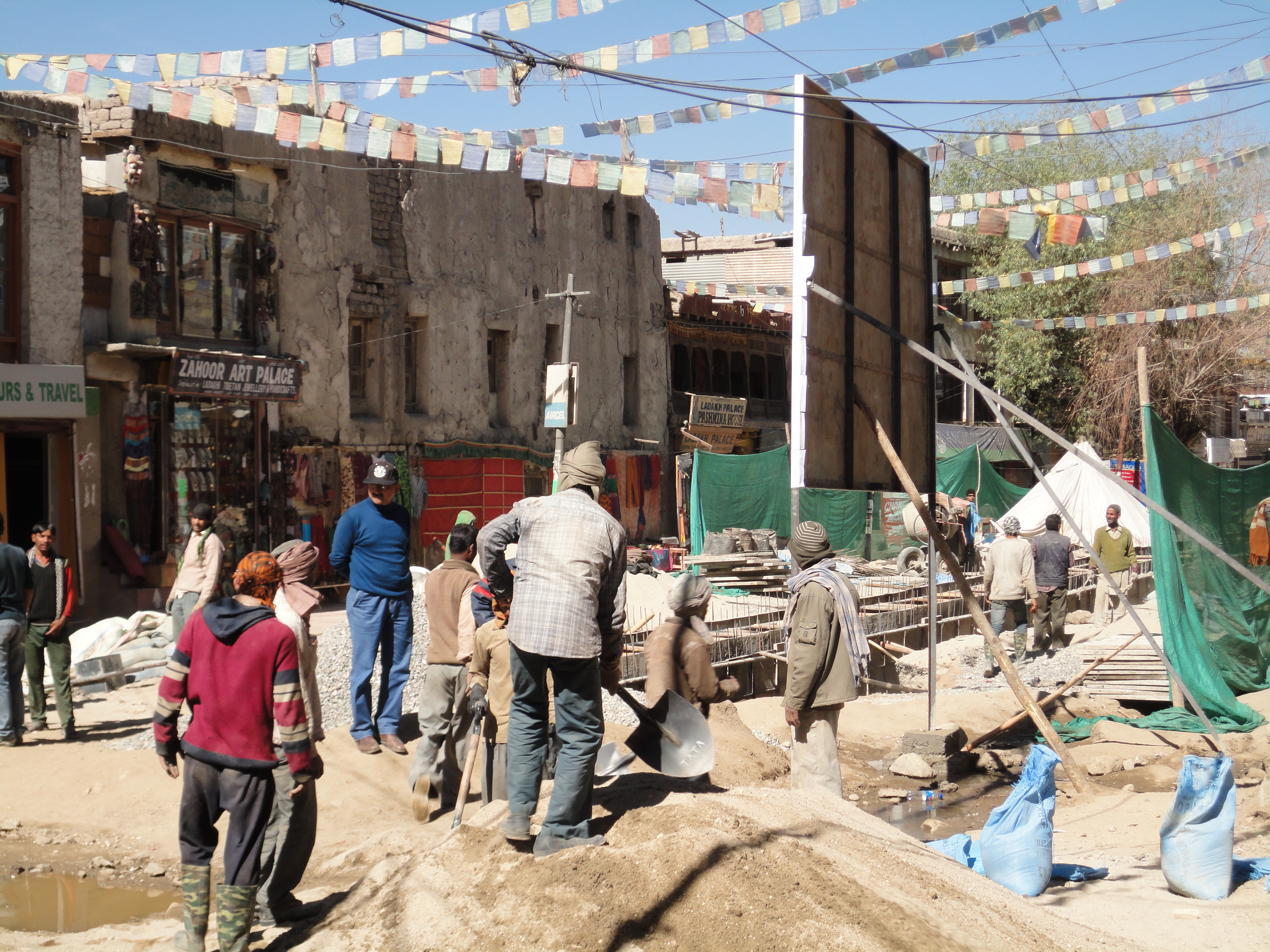 In den Gassen zwischen den Steinhäusern im alten Stadtkern kommt man sich vor wie im Mittelalter. Kühe und Schafe zwängen sich an die Mauern, Sandziegel werden von Männern auf dem Rücken getragen während Händler ihre Waren anbieten. Es raucht aus den Kashmiri Bäckereien, wo man für 5 Rp. ein feines Fladenbrot bekommt.