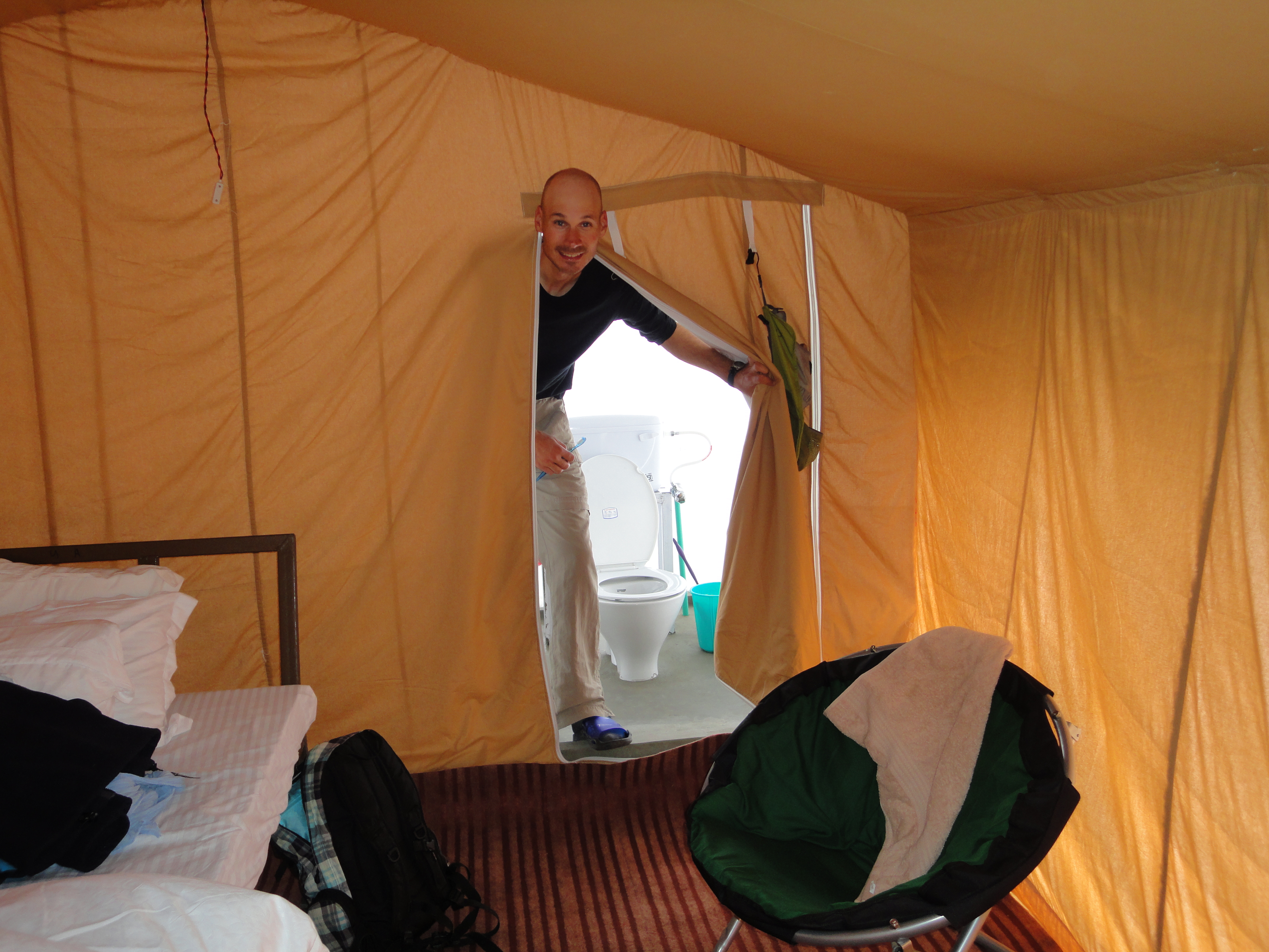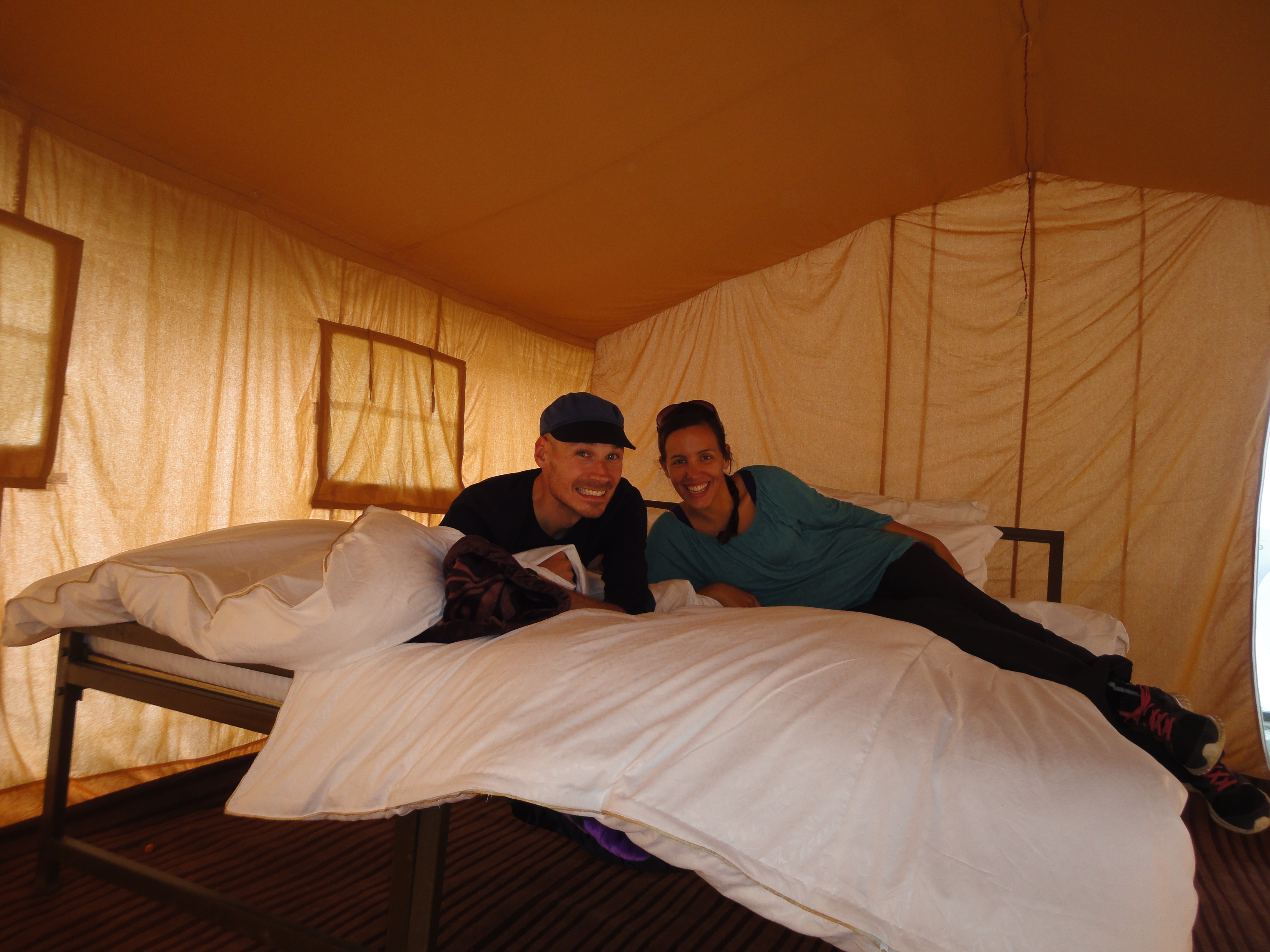 Mit etwas Handeln bekamen wir ein Luxuszelt für einen Drittel des regulären Preises auf dem Prospekt. Das Zelt war ausgestattet mit Teppich, einem richtigen Bett, einer Lampe (sprich mit Strom), Daunendecke und war um einiges grösser als unsere durchschnittliche Unterkunft.