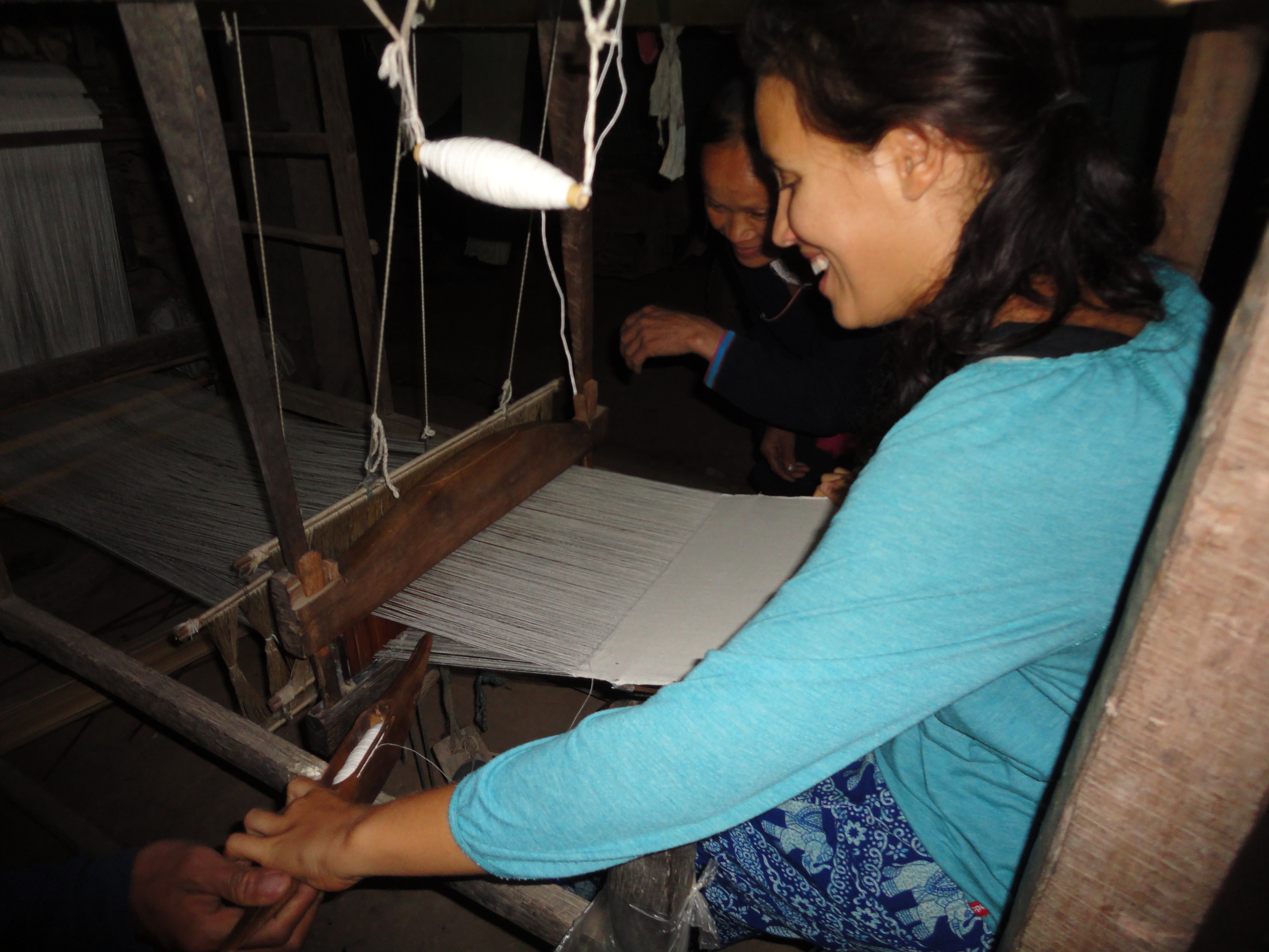 Am Abend machten wir einen Spatziergang durchs Dorf, Hak überredete Karin sich am Webstuhl einer Einheischen zu versuchen. Ja,ja, macht auch Spass, aber einkaufen geht definitiv schneller