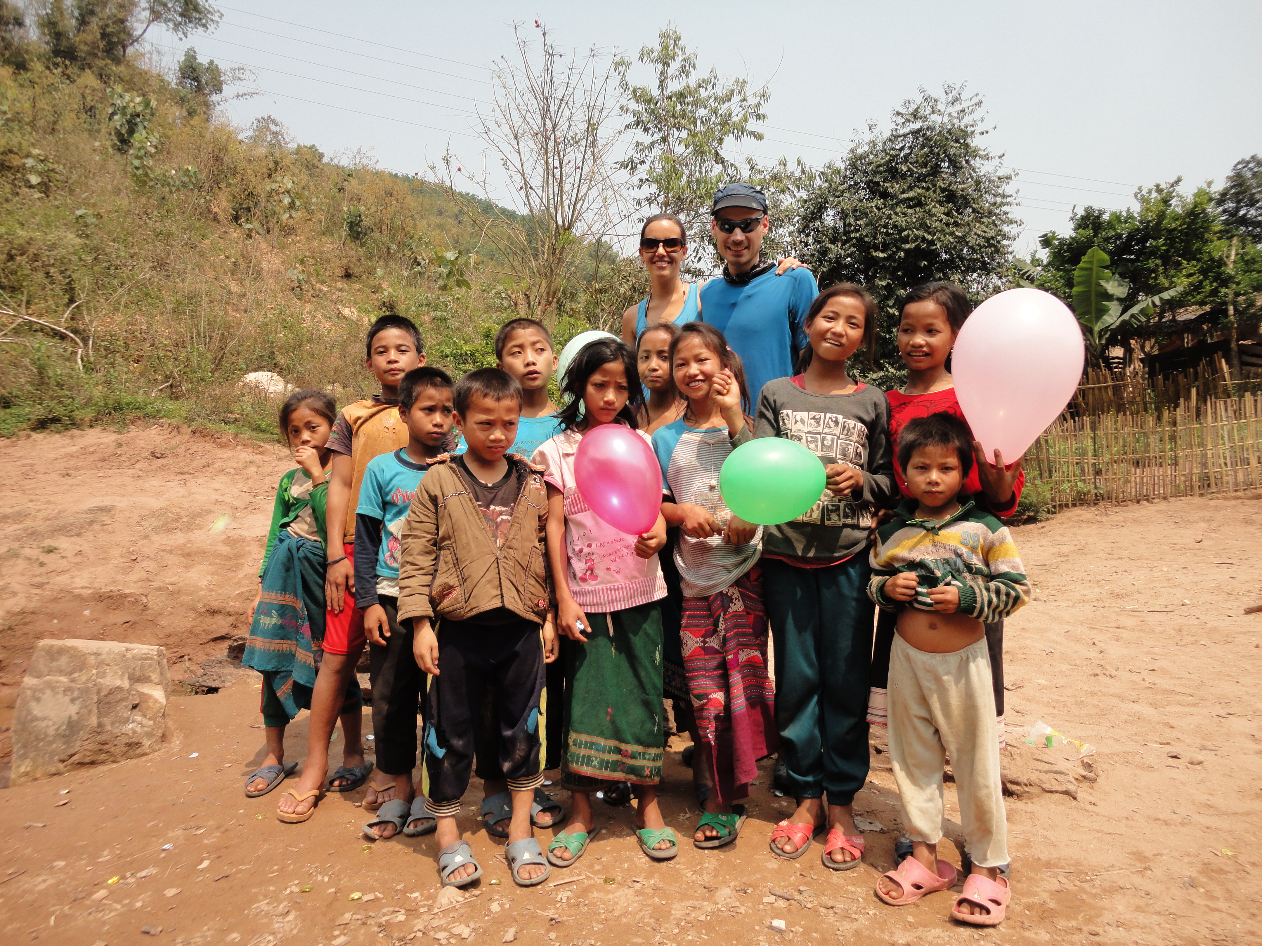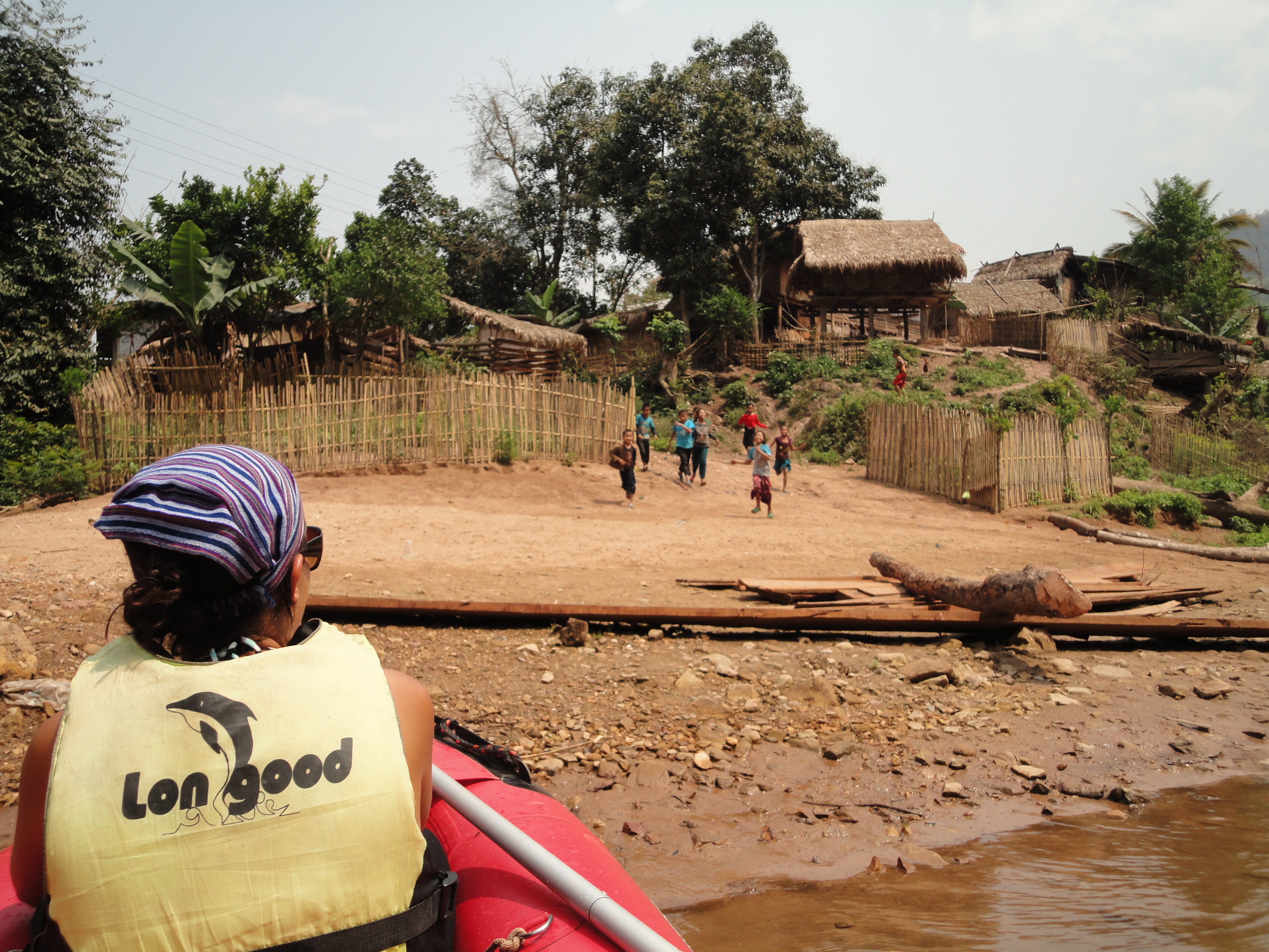 Wir steuerten ein Dorf an und schon kamen die Kinder angerannt. Die Farangs sind eine willkommende Abwechslung und manchmal bringen sie auch Kleinigkeiten wie Ballone oder Süssigkeiten mit.