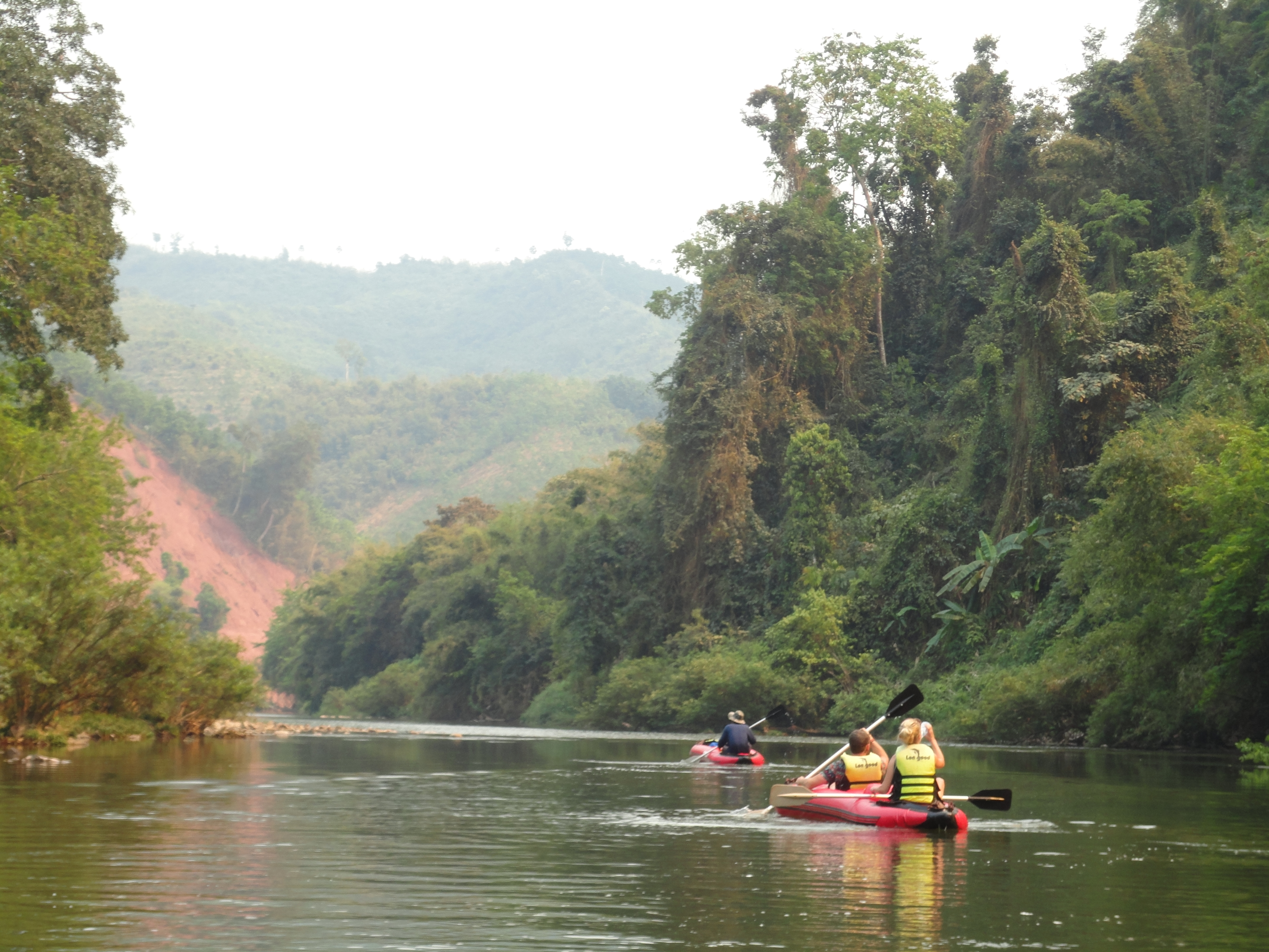 Nachdem wir am Morgen aus dem Moskitozelt gekrochen waren, drückte uns Hak freundlich lächelnd ein Glas süssen Kaffee in die Hand. Er war bereits um 5 Uhr morgends aufgestanden, um sowohl das Zmittag für den heutigen Tag, wie auch unser Frühstück über dem Feuer zuzubereiten. Nach einem laotischen Frühstück mit Reis, Eieromelet und Gemüseeintopf machten wir uns auf Richtung Namtha Fluss. Denn nicht zu Fuss sondern mit einem Kayakgummiboot sollte es heute durch den Nationalpark gehen.