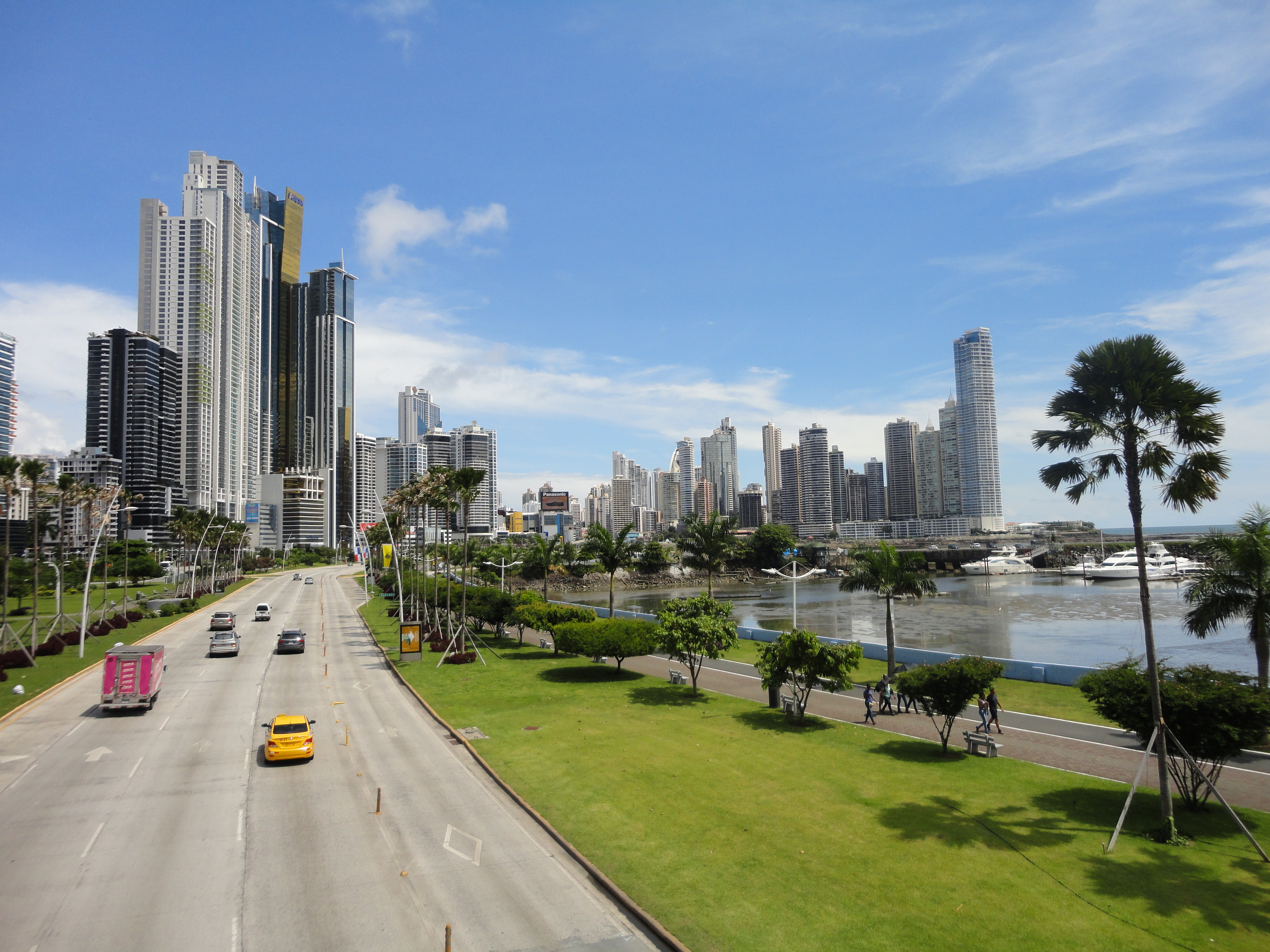 Panama! Was uns wohl hier erwarten würde? Etwas war klar, der Kulturschock würde auf jeden Fall nicht so gross sein, wie bei unserer ersten Weltreise, als wir unsere Südamerikareise in Lima (eine der hässlichsten Städte, welche wir jemals gesehen haben) starteten… Doch wer hätte gedacht, dass uns anstatt staubigen Strassen, lautem Hupen und viel Chaos, eine moderne Skyline, ein Fuss-/ und Fahrradweg direkt am Pazifik etc. erwarten würde. Beim unten stehenden Bild wähnten wir uns eher in Miami als in Panama.