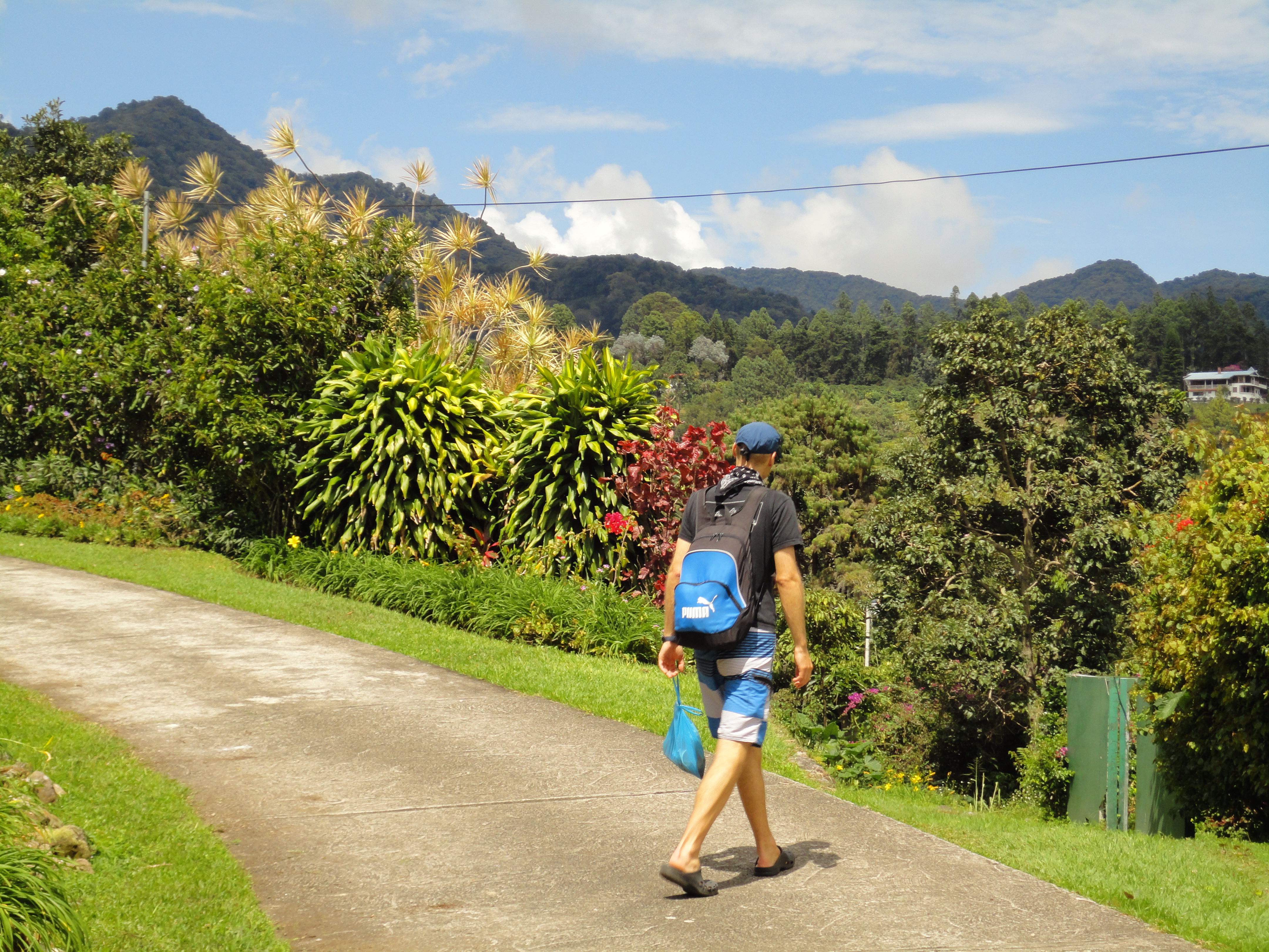 Unsere Gastfamilie wohnte etwas ausserhalb des Ortes, ca. 30 Minuten vom Zentrum und somit von der Schule entfernt. Entweder machten wir uns zeitig auf den Schulweg der viel befahrenen Hauptstrasse entlang, oder wir stellten uns an den Strassenrand und warteten auf ein Sammeltaxi, das uns mit einheimischen Arbeiter in den Ort und wieder zurück zur Gastfamilie transportierte. Pendeln ist hier in Boquete denkbar einfach: Man stellt sich einfach an den Strassenrand und nach ein paar Minuten erscheint meist irgendein kleiner Bus oder ein Auto, welches noch über Platz verfügt. So etwas wie ¨der Bus ist schon voll, es hat keinen Platz mehr¨ gibt es hier gar nicht. Auch wenn der Bus für Schweizer Verhältnisse schon voll ist, haben magischerweise immer noch weitere Personen Platz. Mit ¨Tourist Christian¨ zusammen haben uns die Einheimischen sogar immer noch zwei Sitzplätze offeriert.