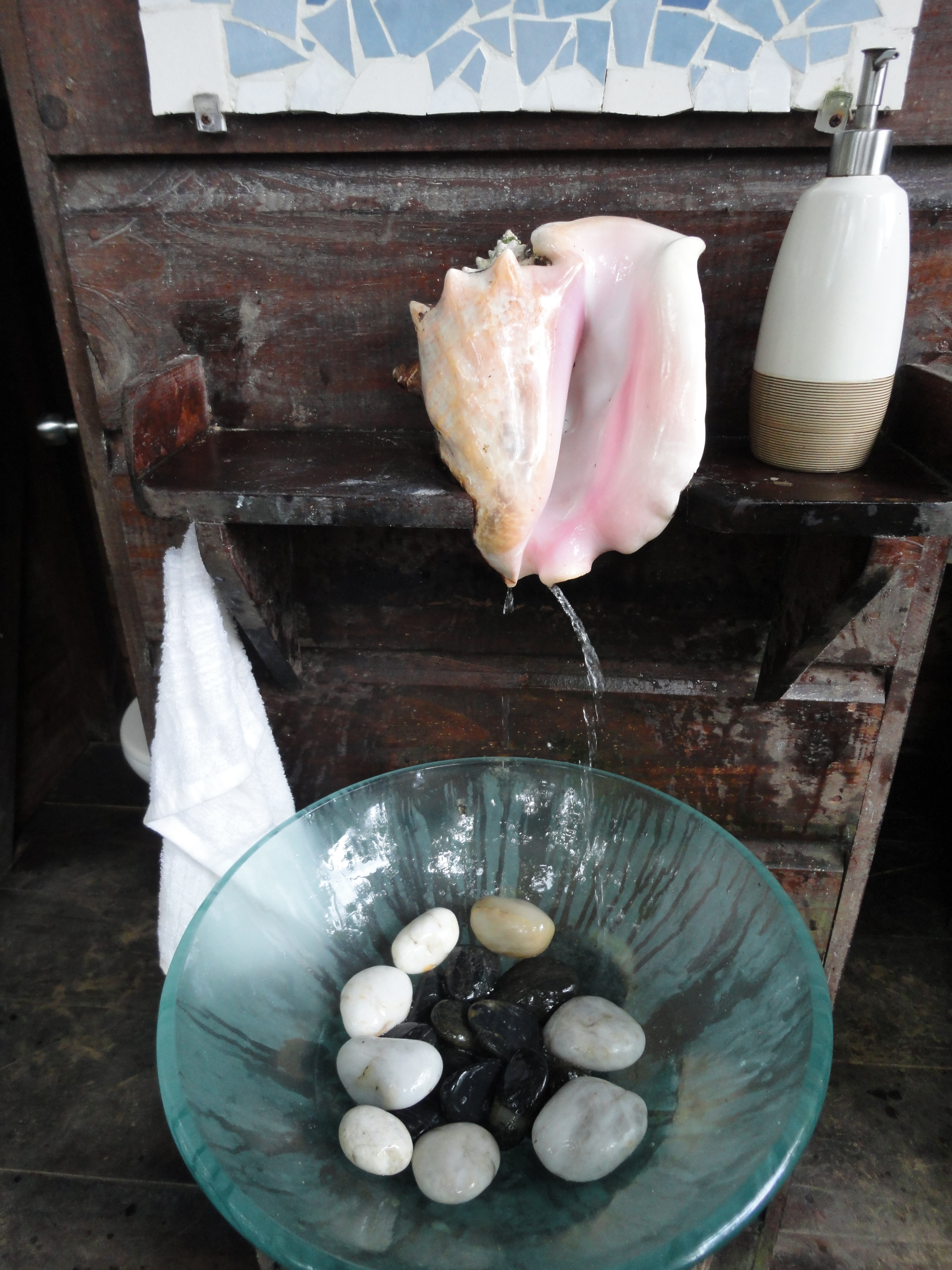 Alles in der Palmar Lodge ist liebevoll gestaltet, sei es in den Zelten, im Gemeindschaftsbereich und sogar die Toilette mit Muschelhahn ist speziell: